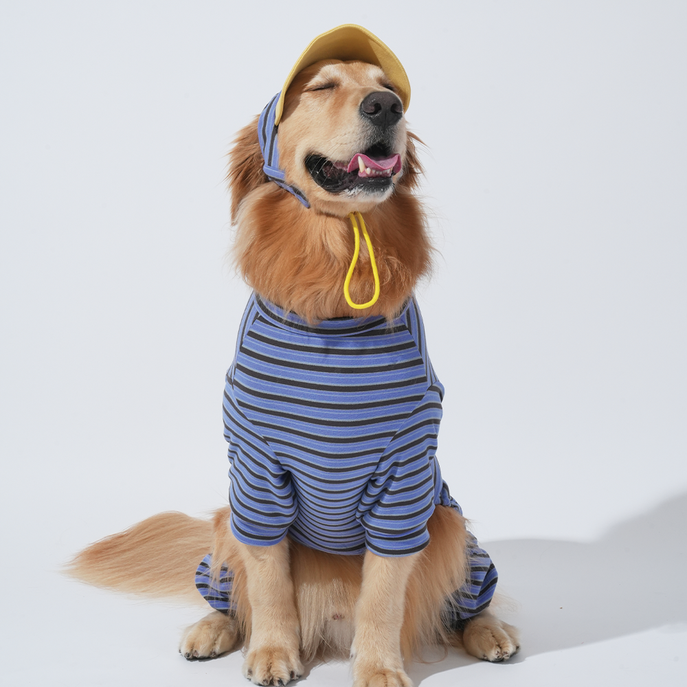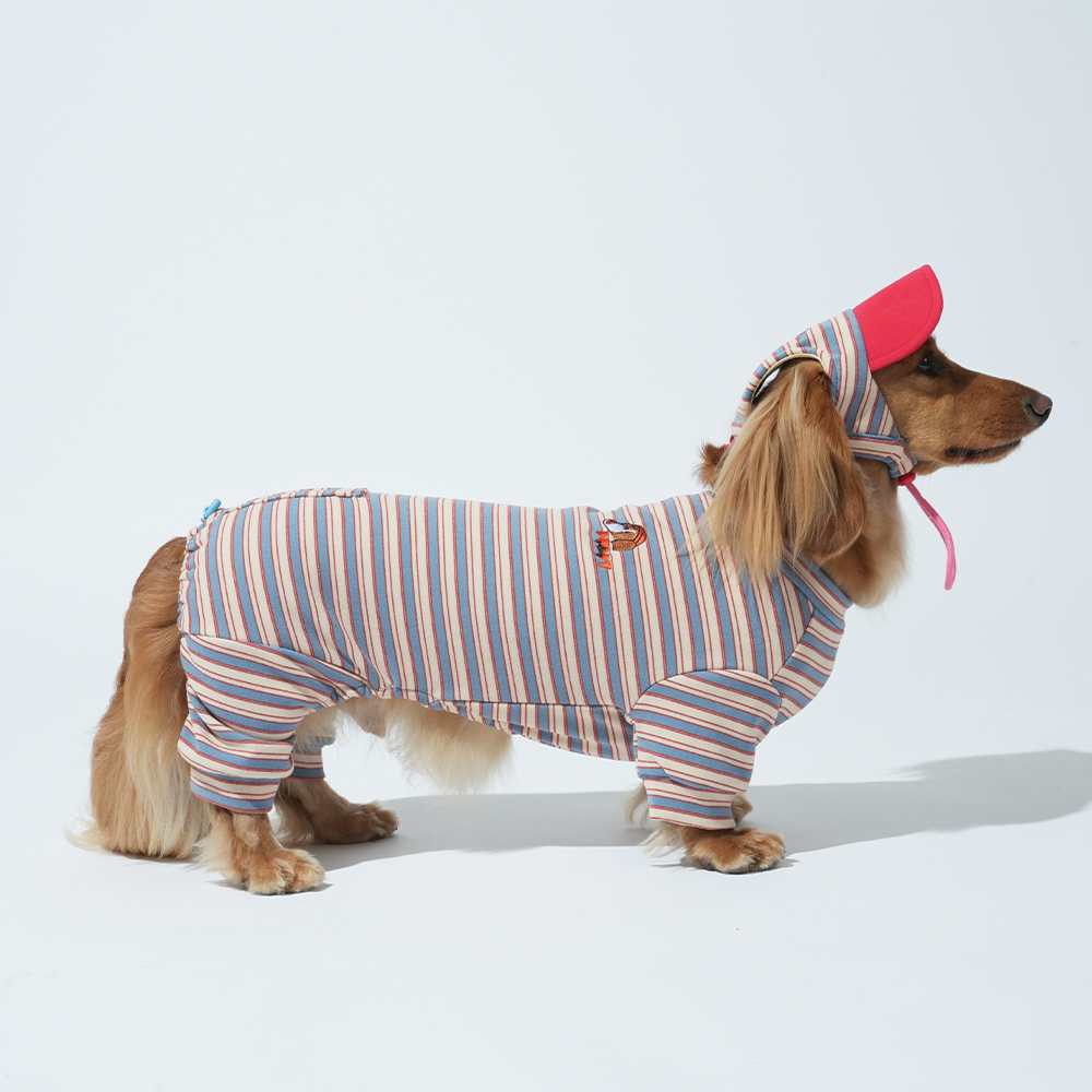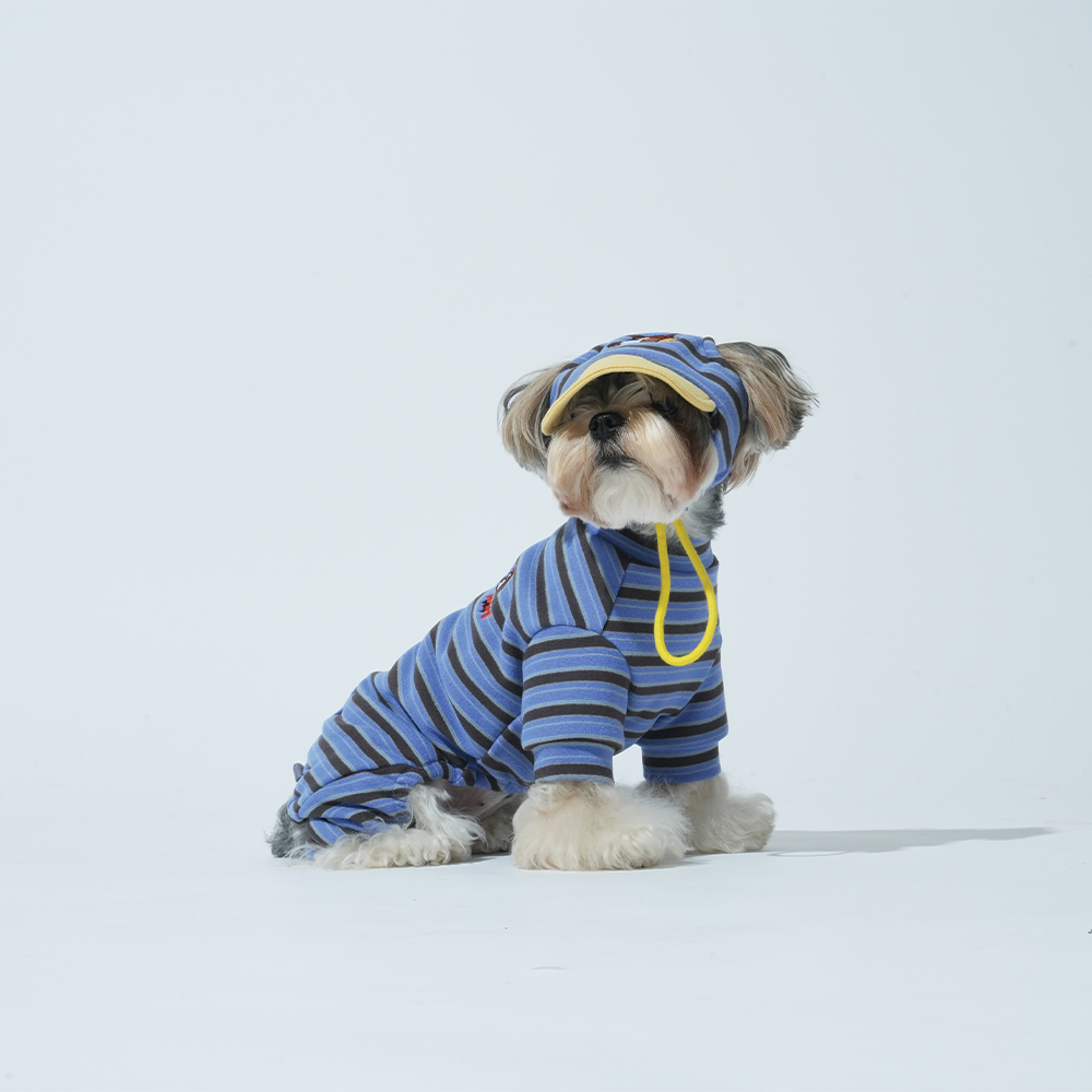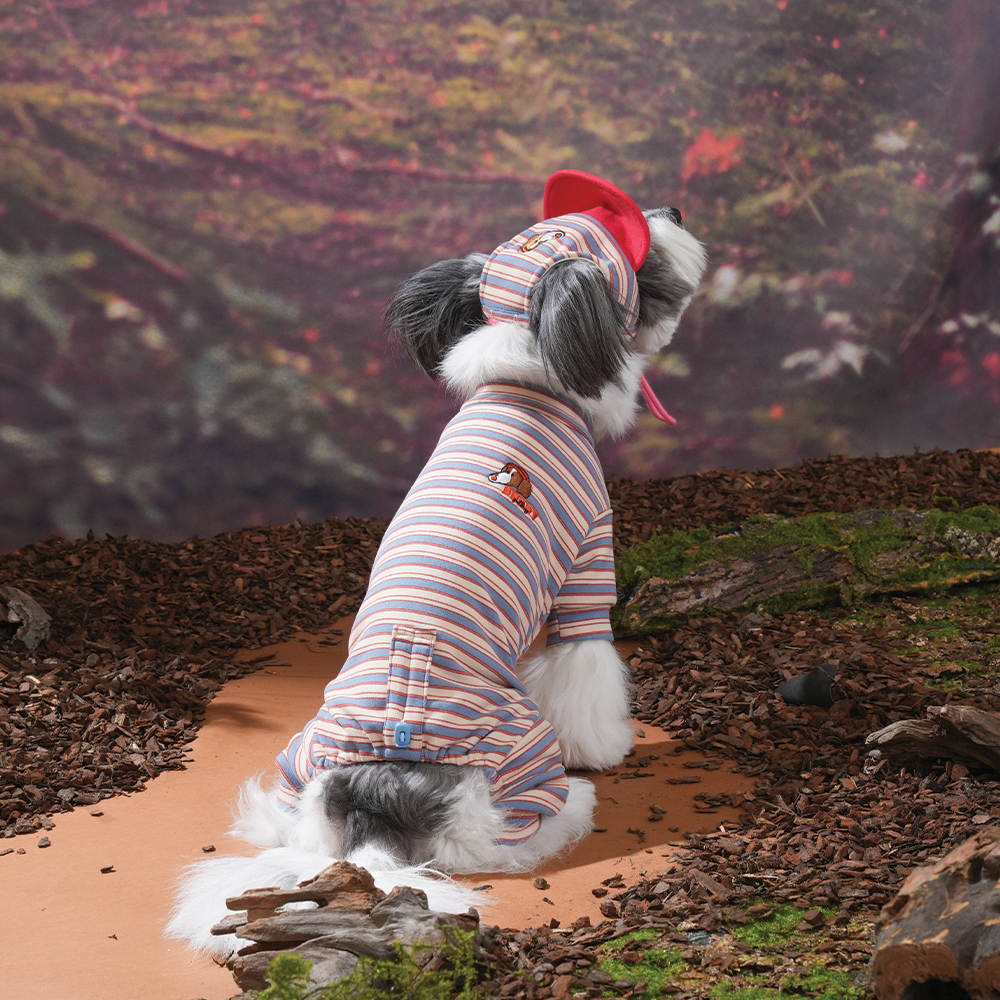 Introduce your pet to cozy comfort with the Homeground All-in-One. This striped jumpsuit is made from a high-quality slub fabric, giving it an exceptionally soft texture perfect for daily wear during the autumn season.