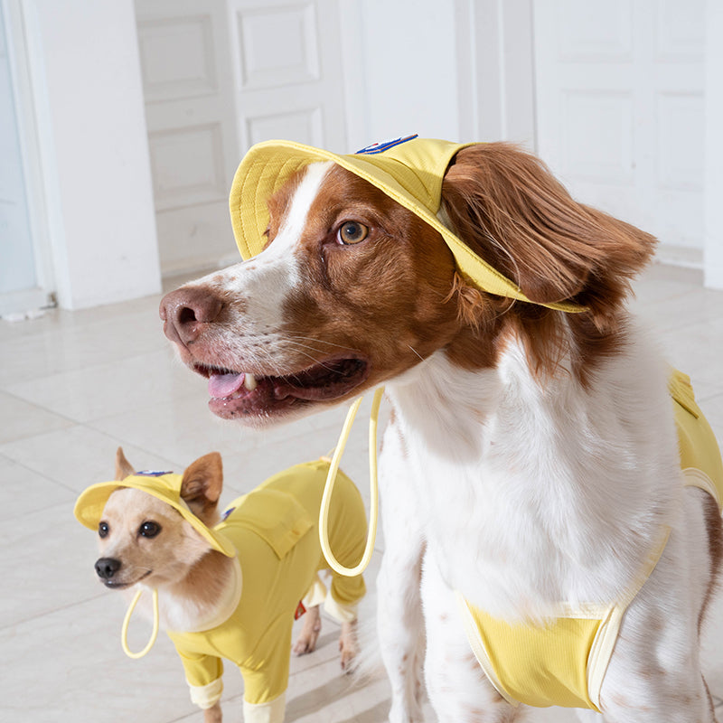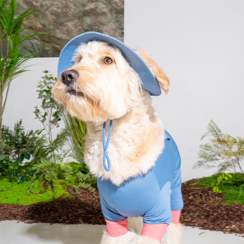Complete your pup's summer cooling wardrobe with Puppy Gallery's Outside+ Cooling Bucket Hat – the stylish, functional solution for sun protection and heat relief! Designed to pair perfectly with our Cooling Tank Top and All-in-One Jumpsuit, this eco-friendly accessory keeps your dog cool through smart water-activated technology.