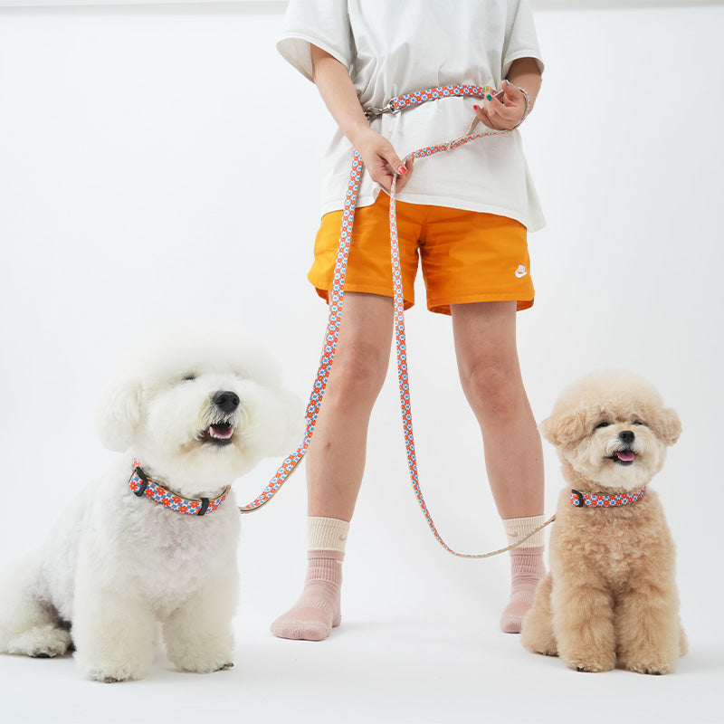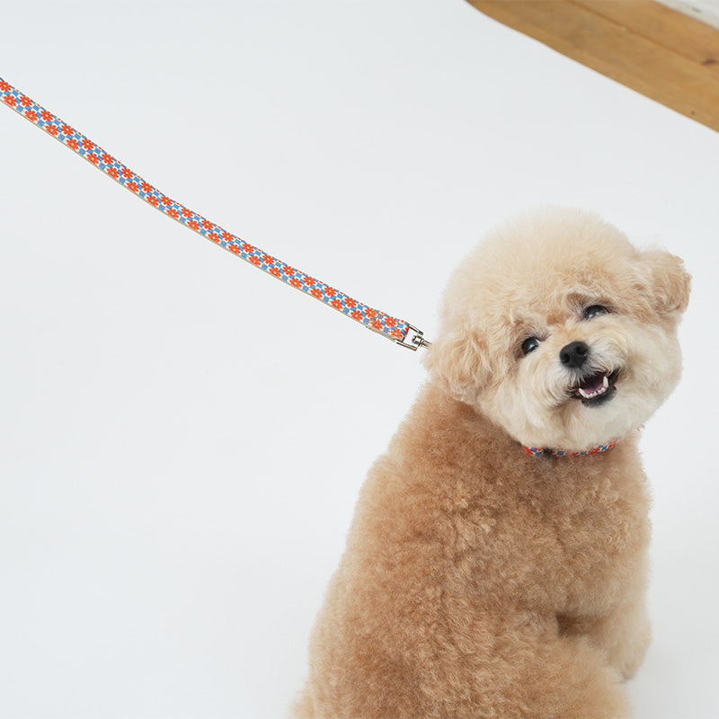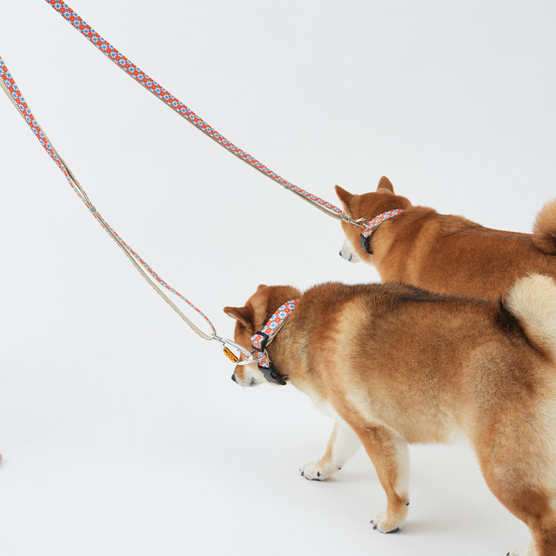 The Retro Flower Lead features a colorful pattern on high-quality polyester webbing, printed on both sides. It is designed with durable, sturdy stitching, a high-quality buckle, and a 360-degree rotating hook for a safe and comfortable walk. A high-quality D-ring is also included for attaching a poop bag or other accessories.