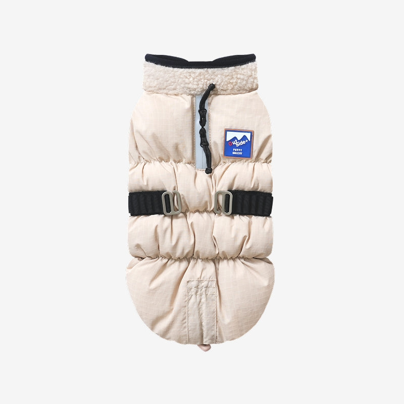 In the cold winter, both owner and dog need warmth. The Ice Field Color Block Padding is a sophisticated winter outer layer that mixes functional ripstop material with soft fleece fabric. It uses a lightweight "Wellon" filling and a heat-generating thermal lining. With its short sleeve design, this padding guarantees both your pet's comfortable activity and their cuteness.