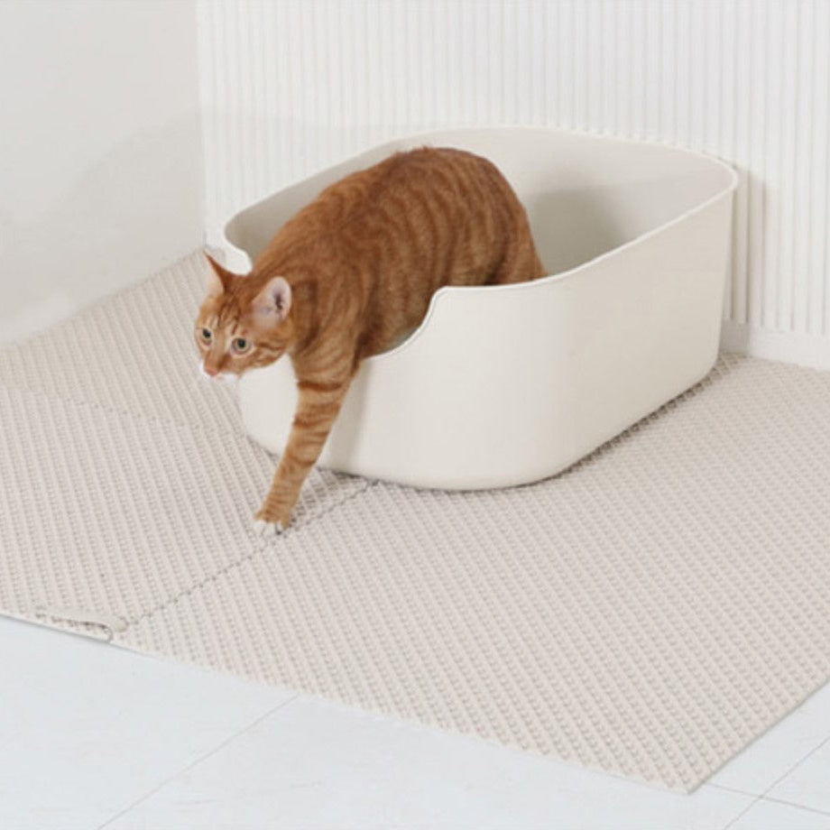 Modular EVA mat system engineered to solve 3 feline problems: litter tracking, paw comfort, and interior harmony